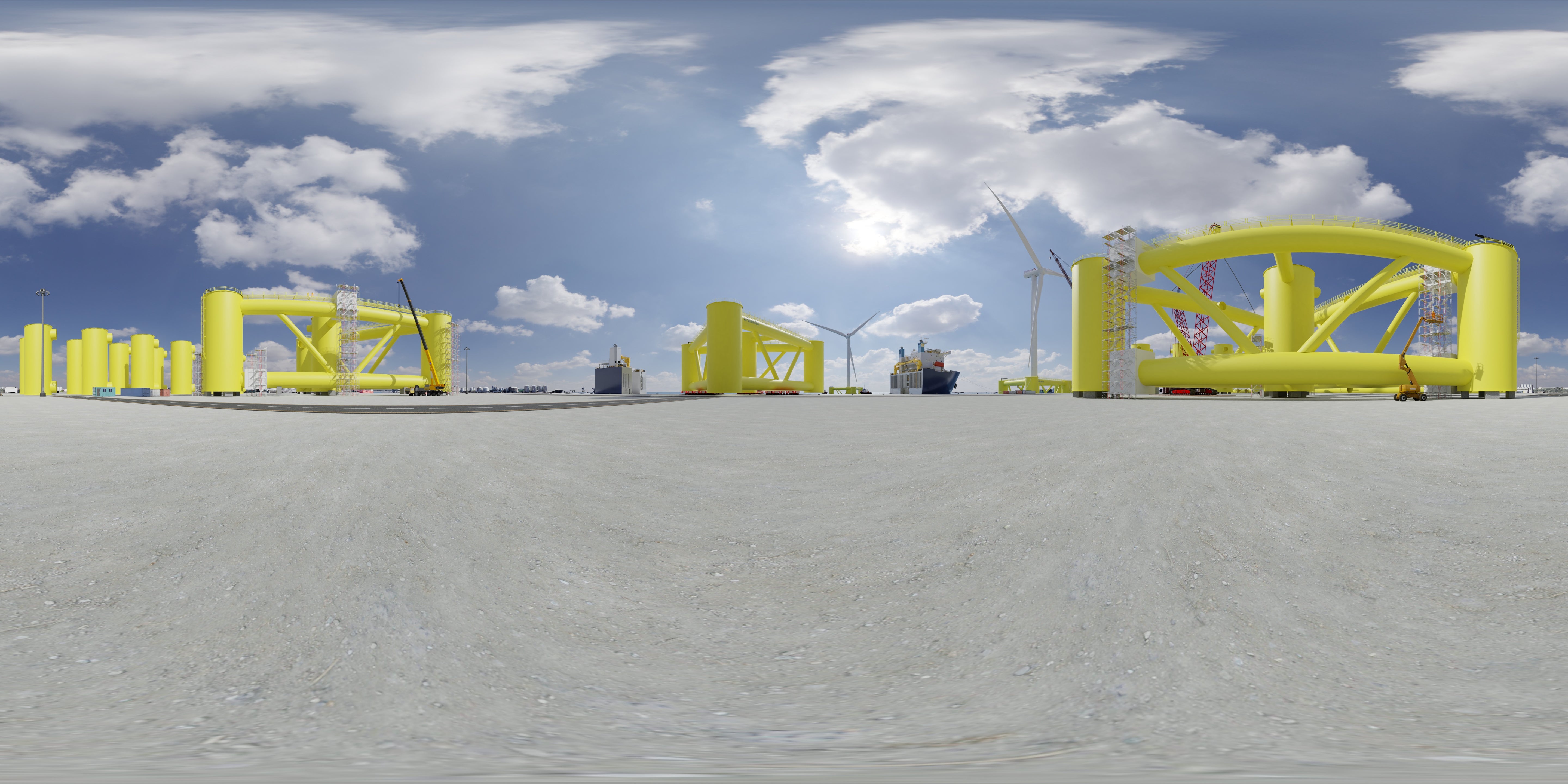 We create realistic Virtual reality 360° scenes of Port environments with typical offshore wind projects, with typical components and operations, that help a large audience to appreciate the dimensions and the challenges of this type of project.